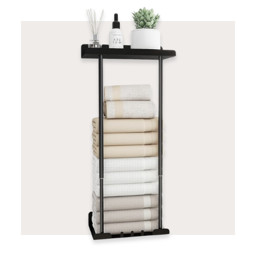 This sleek rack keeps towels organised and within reach while maximising storage space for large families or shared bathrooms.